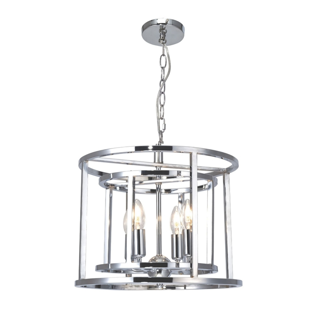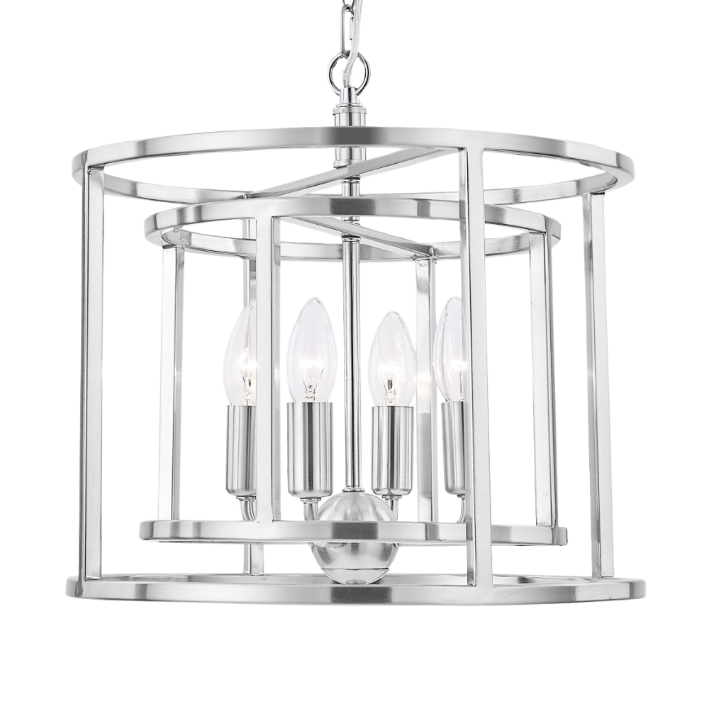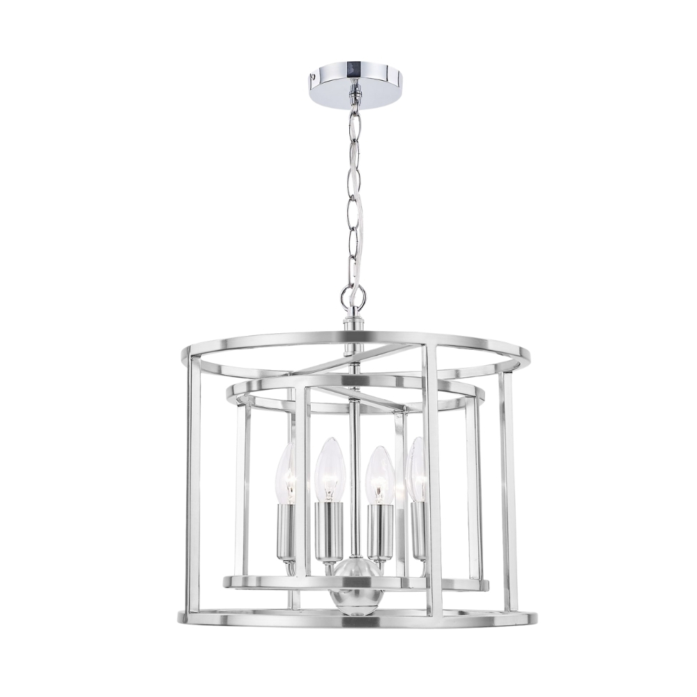 The Chester 4 Light cage style pendant offers an equally contemporary and vintage styling to your room. The collection is available in Antique Brass or Satin Chrome, in a single, 4-light or 6-light version.