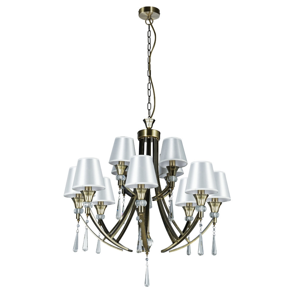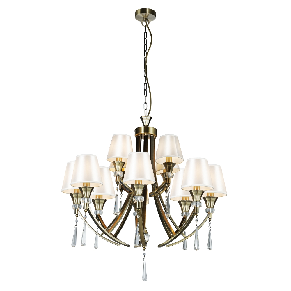 This Sophia 12 Light Multi-arm Crystal Ceiling Pendant Light comes in Antique Brass. This fitting would make a Stunning addition to any Living Space. Each arm of the Sophia is adorned with a Crystal Sconce and Droplet and has a decorative crystal ball of the centre stem. It can be used with or without shades. The Height is adjustable before installation; Extra Chain will need to be ordered if necessary. This Sophia 12 Light is also available in Satin Chrome.