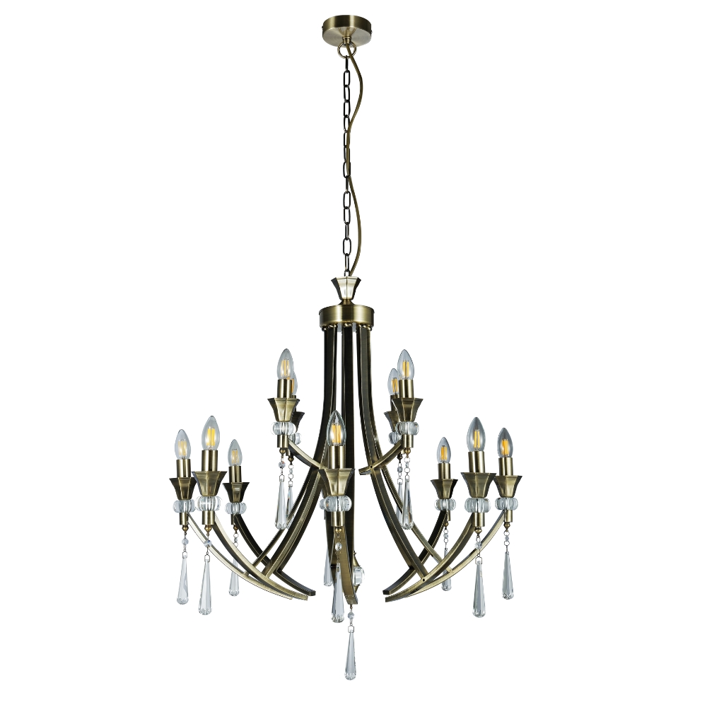 Sophia 12 Light Crystal Ceiling Light Antique Brass requires 12 Bulbs