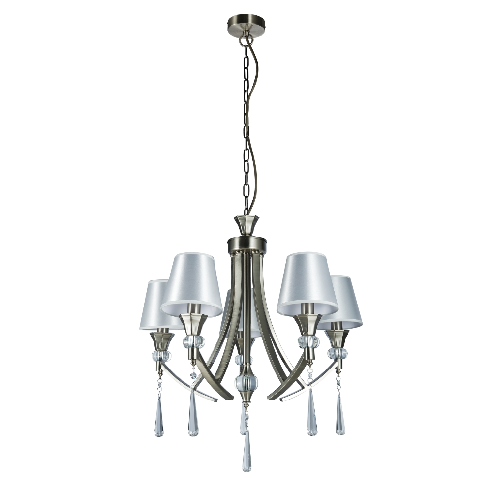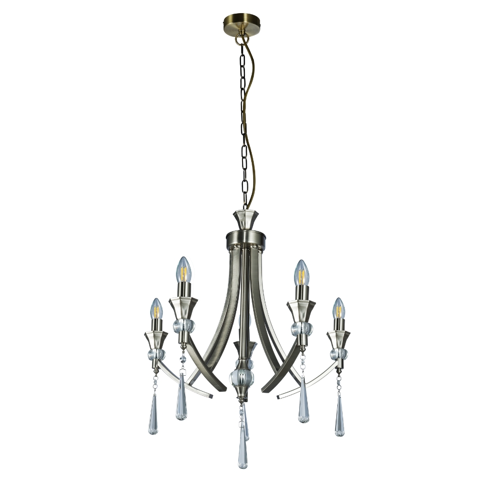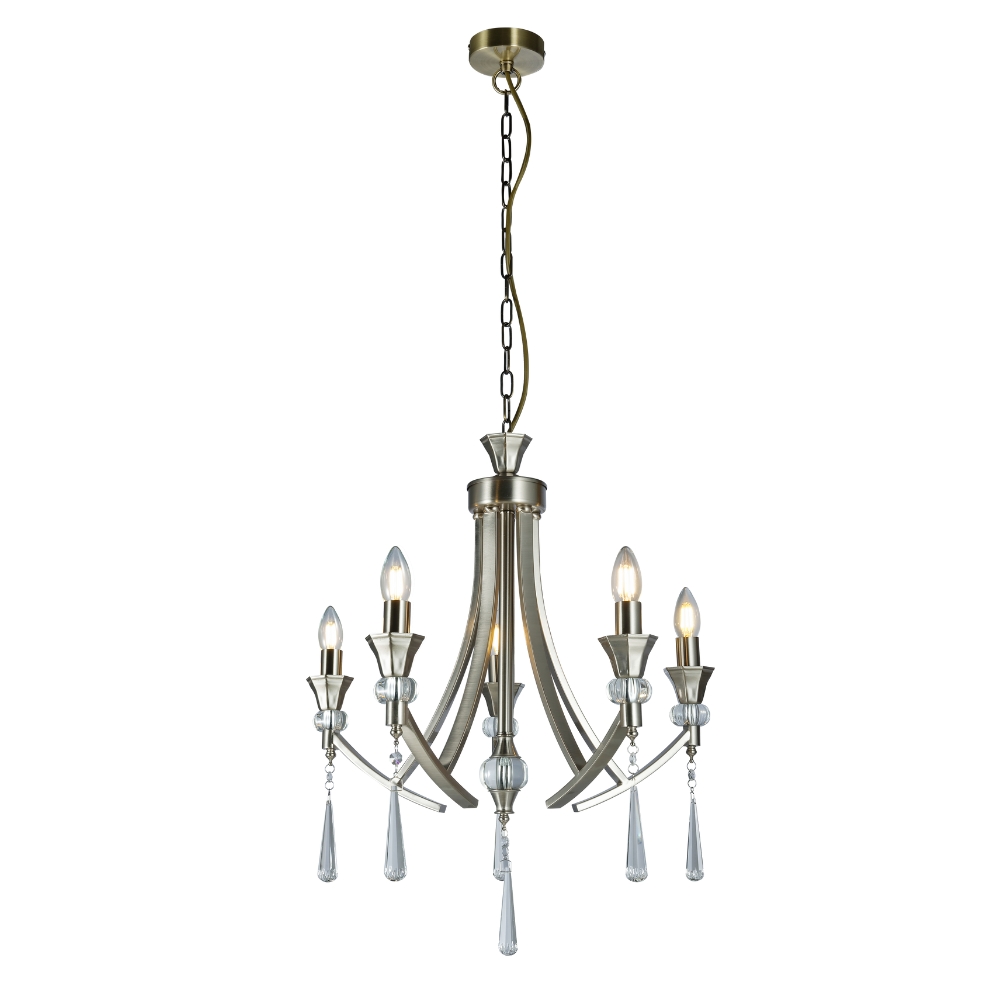 This Sophia 5 Light Multi-arm Crystal Ceiling Pendant Light comes in Satin Chrome. This fitting would make a Stunning addition to any Living Space. Each arm of the Sophia is adorned with a Crystal Sconce and Droplet and has a decorative crystal ball of the centre stem. It can be used with or without shades. The Height is adjustable before installation; Extra Chain will need to be ordered if necessary.