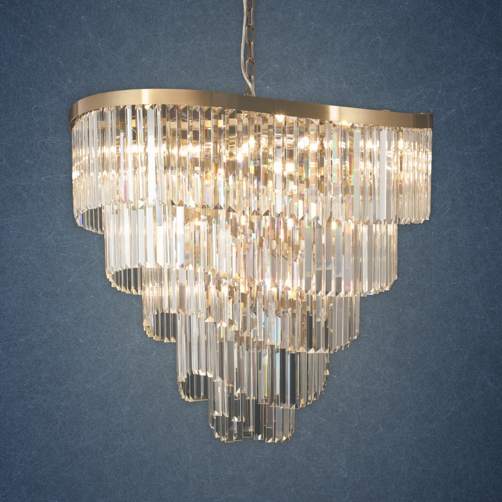 Elevate your living space with the Waverly 16 Light Crystal Pendant in Satin Brass, a luxurious and glamorous lighting fixture that seamlessly marries modern design with opulent charm. Its lustrous satin brass finish adds an air of sophistication, making it an exquisite addition to any room. With sixteen dazzling light sources and sparkling crystal accents, it bathes your space in a captivating and radiant glow, perfect for dining rooms, entryways, or areas in need of opulent ambiance. The Waverly Crystal Pendant expertly harmonizes contemporary aesthetics with luxurious charm, providing both style and abundant illumination.